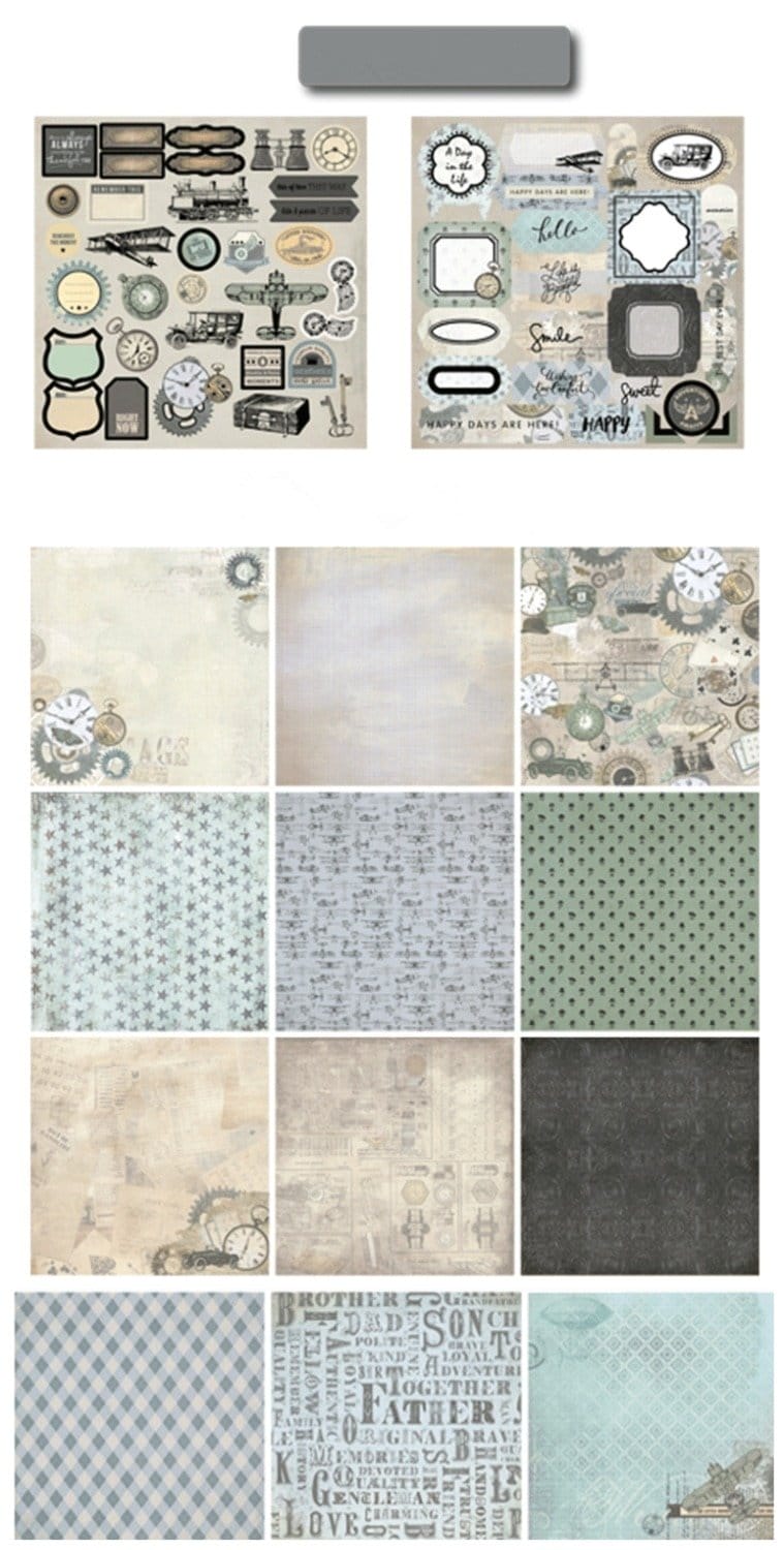 10x10 EnoGreeting Scrapbook paper pack - Traveller (PP009) (Set of 24 sheets and 2 die cut sheets)