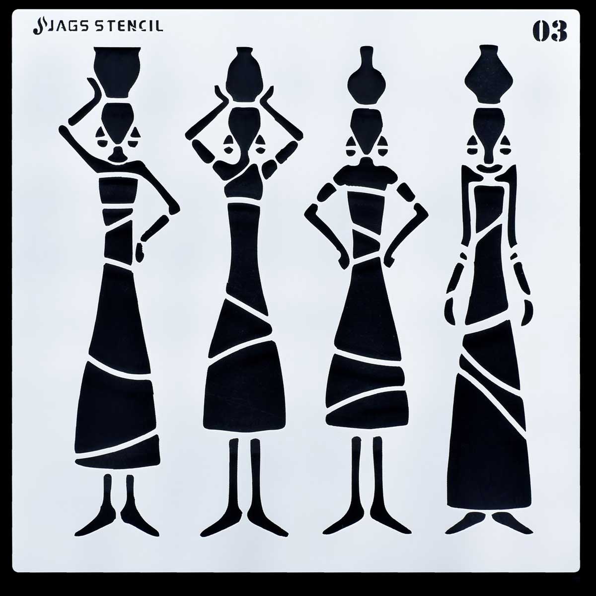 6 by 6 inches Stencil - African Models 3 6 by 6 inches Stencil - African Models 3