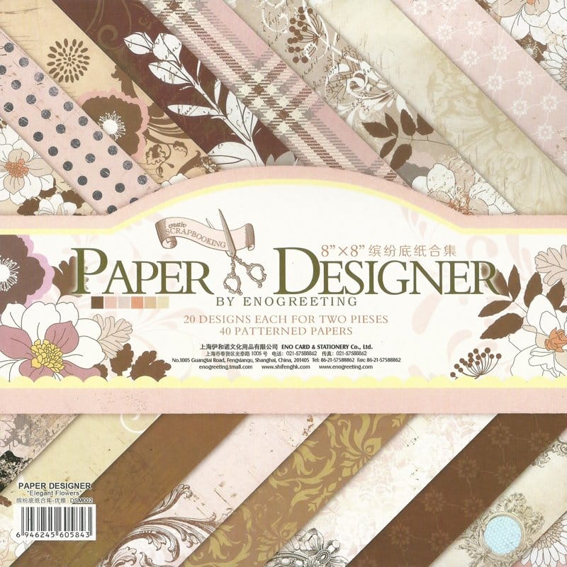8x8 EnoGreeting Scrapbook paper pack - Elegant Flowers (Set of 40 sheets)