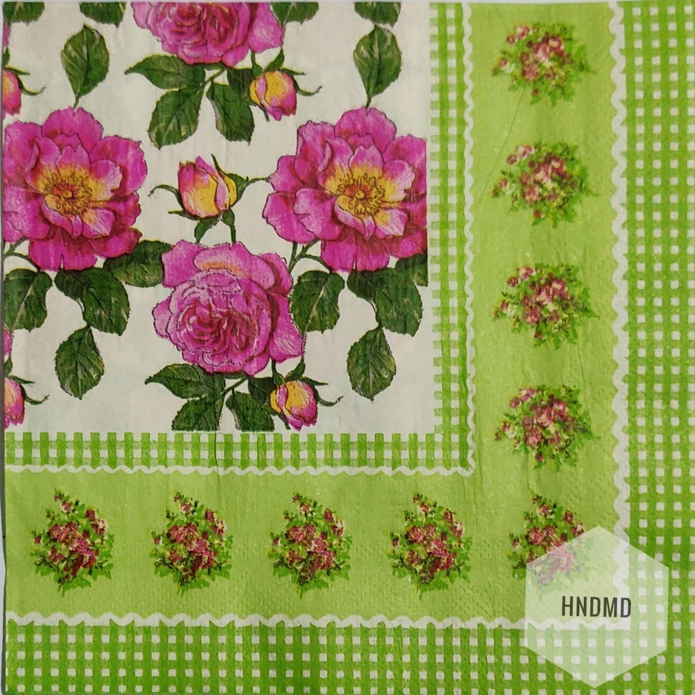 A pack of 12 by 12 inch Decoupage Napkins(5 pcs) - Flowers with Green border