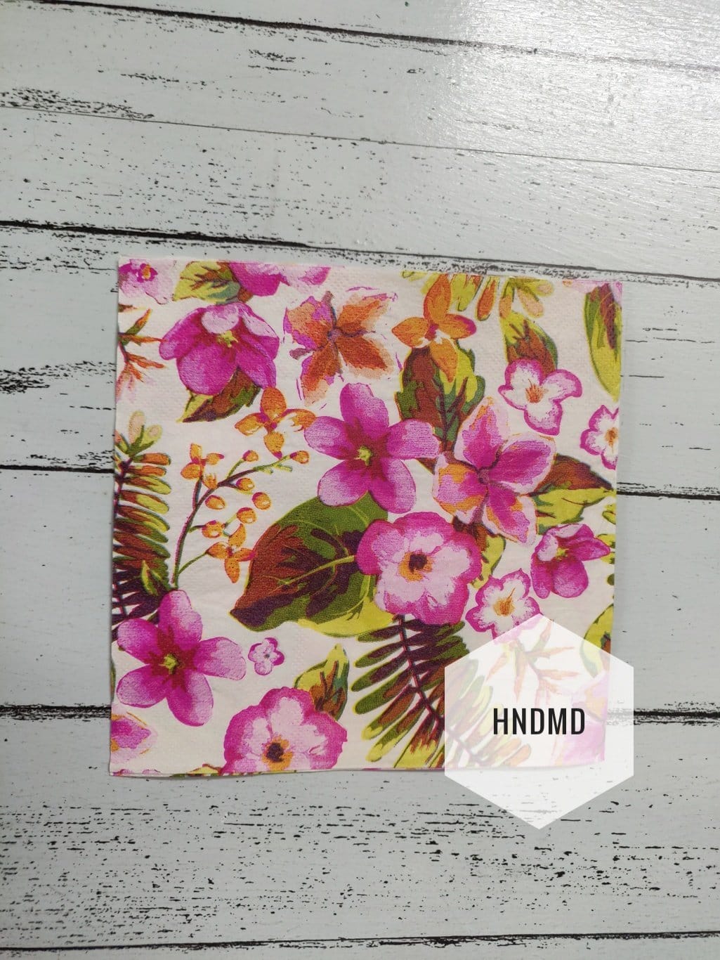 A pack of 12 by 12 inch Decoupage Napkins / Decoupage Tissues (5 pcs) - Pink Flowers