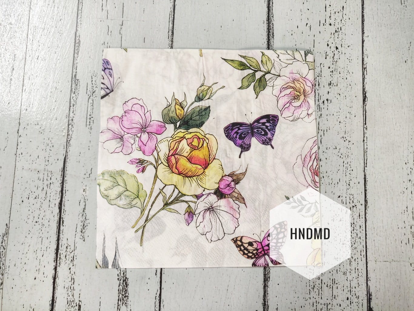 A pack of 12 by 12 inch Decoupage Napkins / Decoupage Tissues (5 pcs) - Sketched flowers