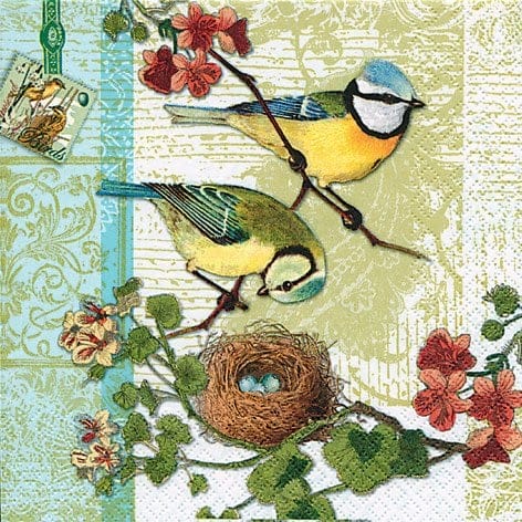 A pack of 12 by 12 inch German Decoupage Napkins ( 5 pcs ) - Birds Family
