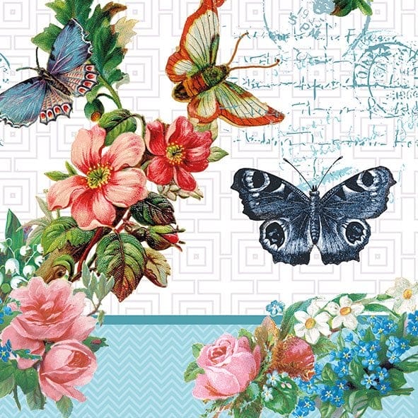 A pack of 12 by 12 inch German Decoupage Napkins (5 pcs) - Flower and Butterflies