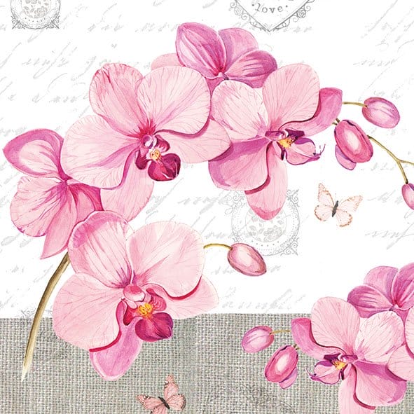 A pack of 12 by 12 inch German Decoupage Napkins (5 pcs) - Orchids with Love