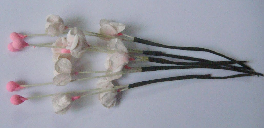 A pack contains 10 stem with flowers and each stem is .25 – .5 inch wide and has 4 inch long.