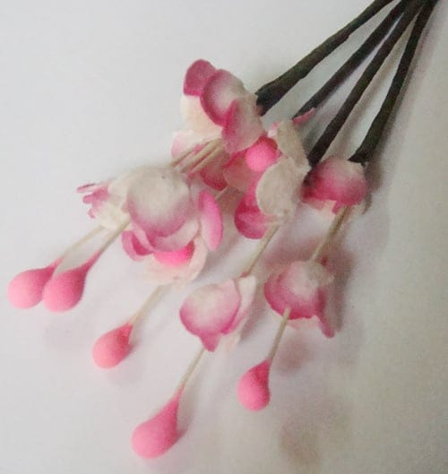 A pack contains 10 stem with flowers and each stem is .25 – .5 inch wide and has 4 inch long.