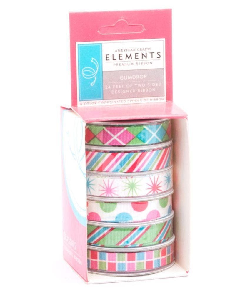 Each pack contains in all 24 feet of 2 sided ribbon divided in 6 designs.