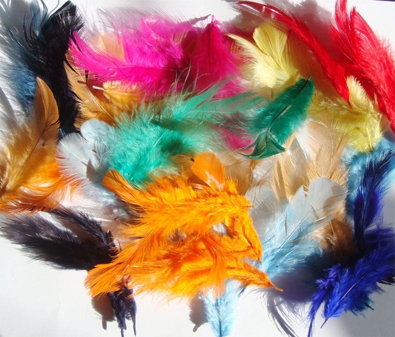 A pack contains 20 feathers of mixed colors and different sizes