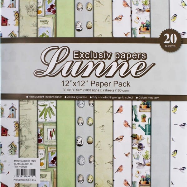 Assorted 12x12 Lunne Paper Pack - Little Birdie (Set of 20 sheets)
