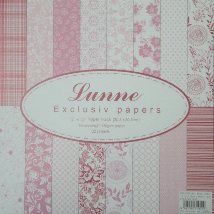 Assorted 12x12 Lunne Paper Pack - Pink (Set of 32 sheets)