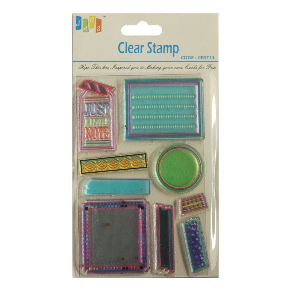 This 5.5 by 4 inch clear stamp set and contains 9 pieces of individual stamps.
