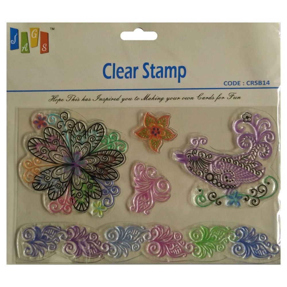 This 4.5 by 7.5 inch set and contains 5 pieces of individual stamps.