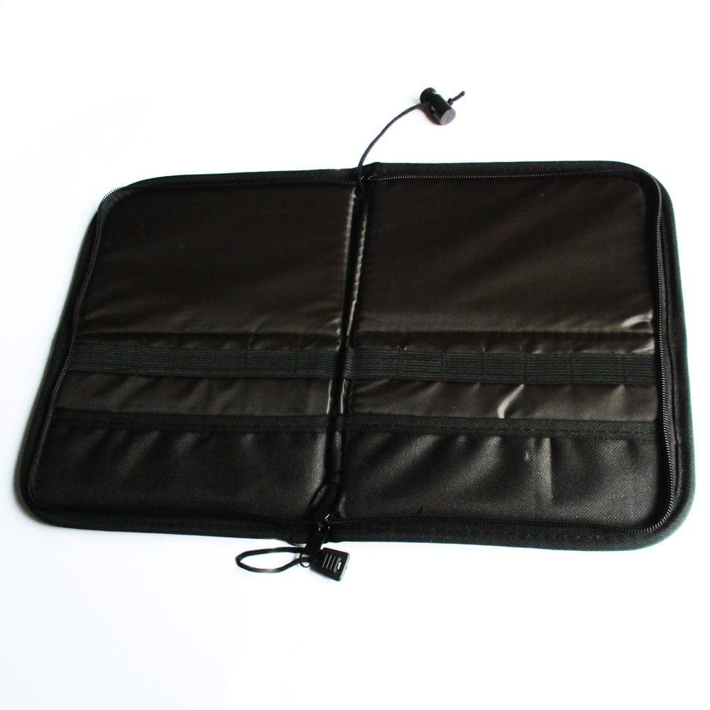 The black artist brush holder is suitable for all artistic needs, that require you to carry and hold long brushes. An adjustable drawstring cord secures the case so it stands upright, and a stitched elastic band holds brushes in place for easy access..