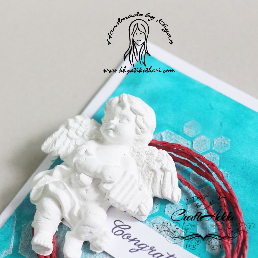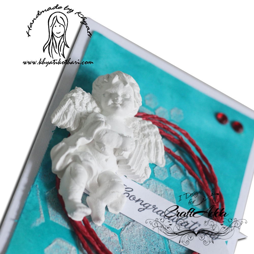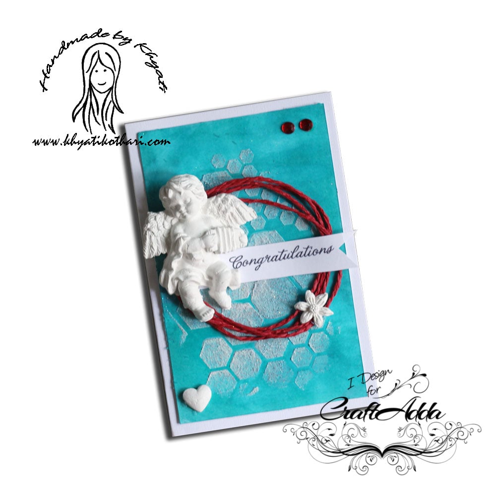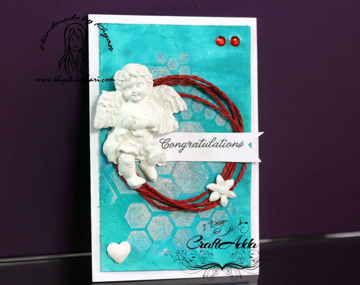 I am in love with these new angel molds, so many possibilities here is one of them. For the background I have used tim holtz distress inks and added some design using texture paste. Then I have added some paper twine and finally embellished some clay molds and rhinestones.
