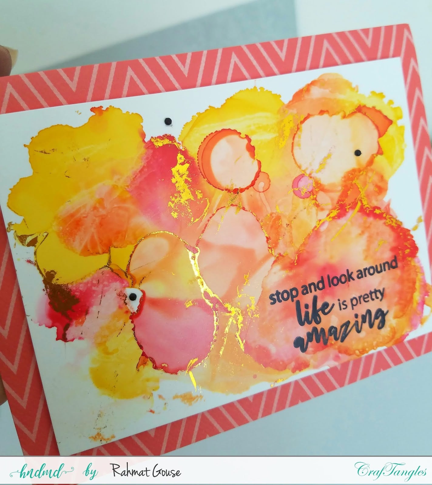 The first card is made using Alcohol inks and gold foil.