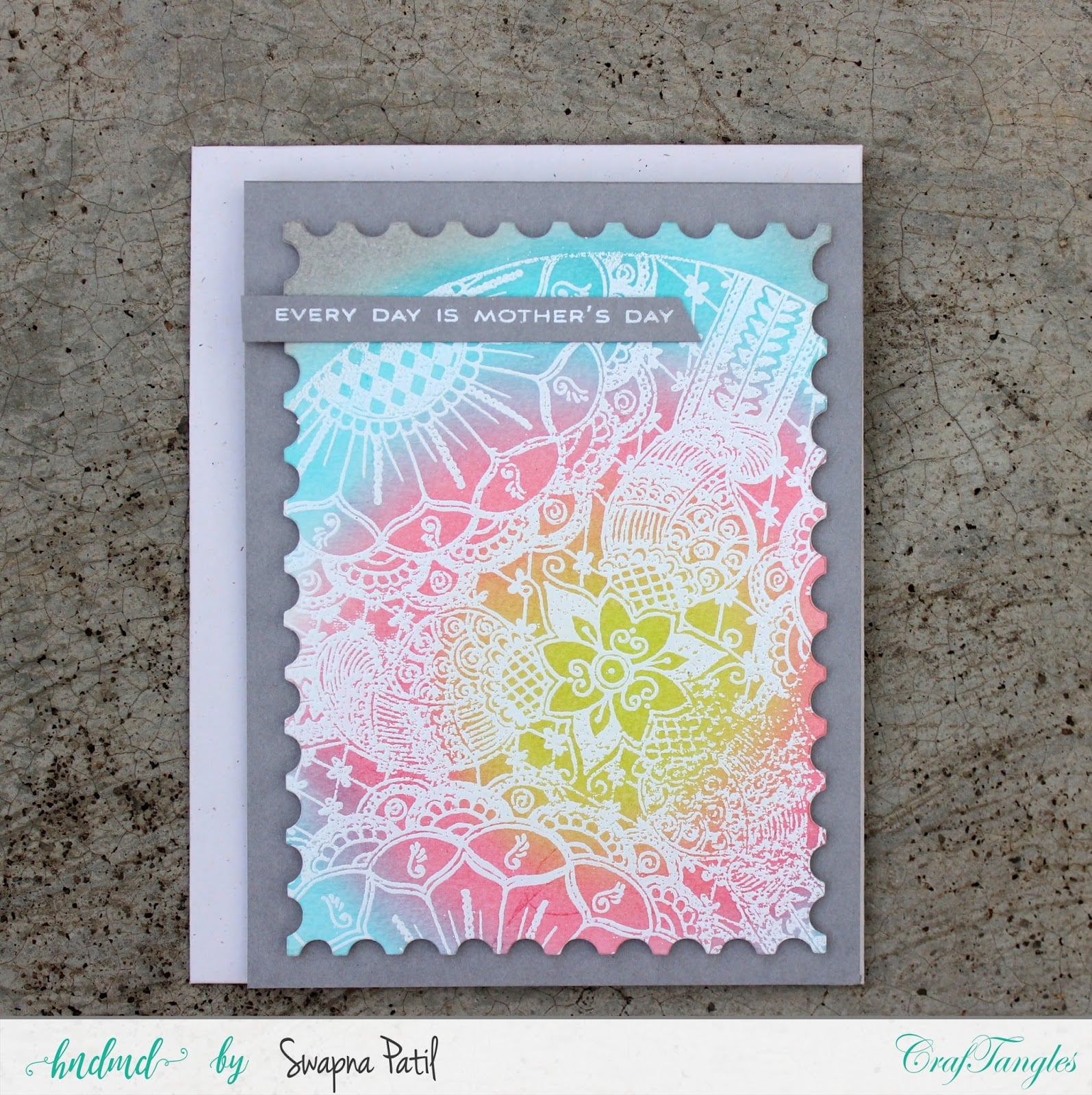 Here I am with my post. English Mother’s day is approaching so I have made a few cards for Mother’s. I say English mother’s day because During Depaavali we have Hindu mother’s day but often remember it. In this post I tried to concentrate on making backgrounds with stamp and stencil.