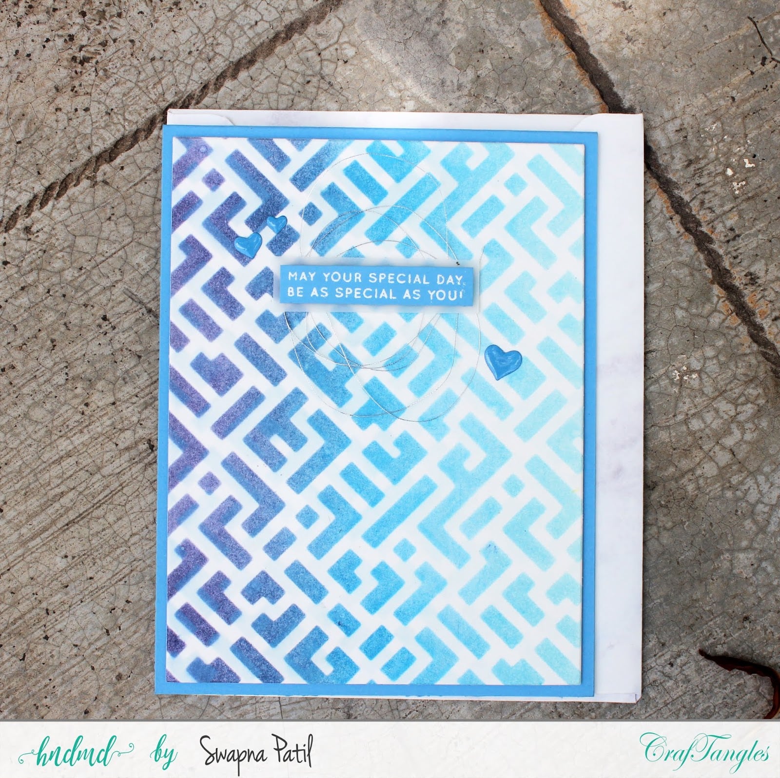 I am Swapna here again with 3 more cards using Craftangles stencils. Stencils are so inexpencive yet we can do so many techniques with them.