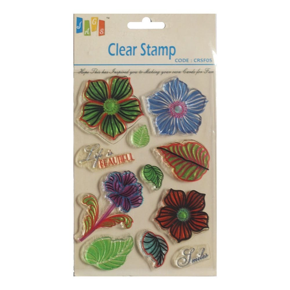 This 5.5 by 4 inch clear stamp set and contains 11 pieces of individual stamps.