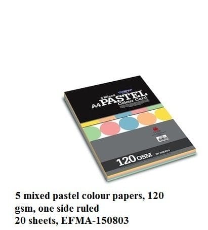 CAMPAP 2 side ruled pastel 5 mixed colour paper pack A4( 4 sheets per colour) – Pack of 2 (EFMA 150804)