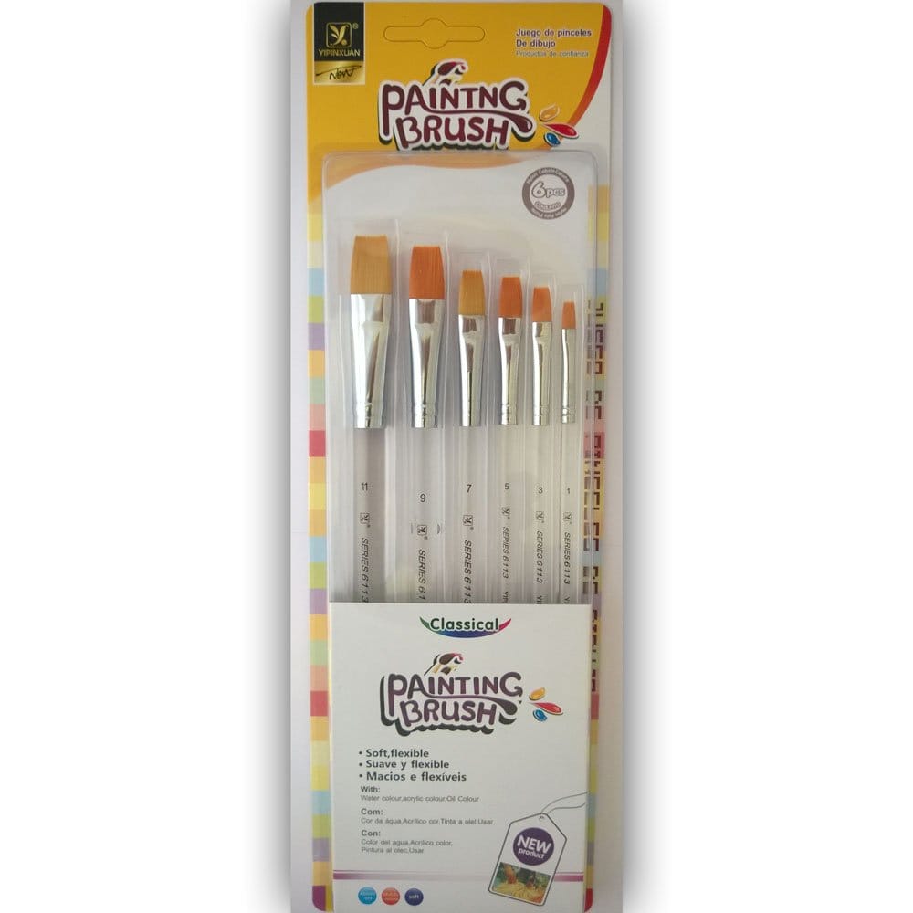 This classical painting brush set contains 6 high quality flat brushes and are perfect for your art and scrapbooking needs.