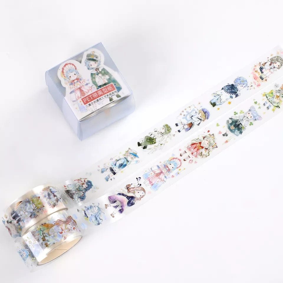 The listing is for a clear sticker roll pack and each pack contains 2 rolls of 2.2 cm each and length of approximately 200 cm each.