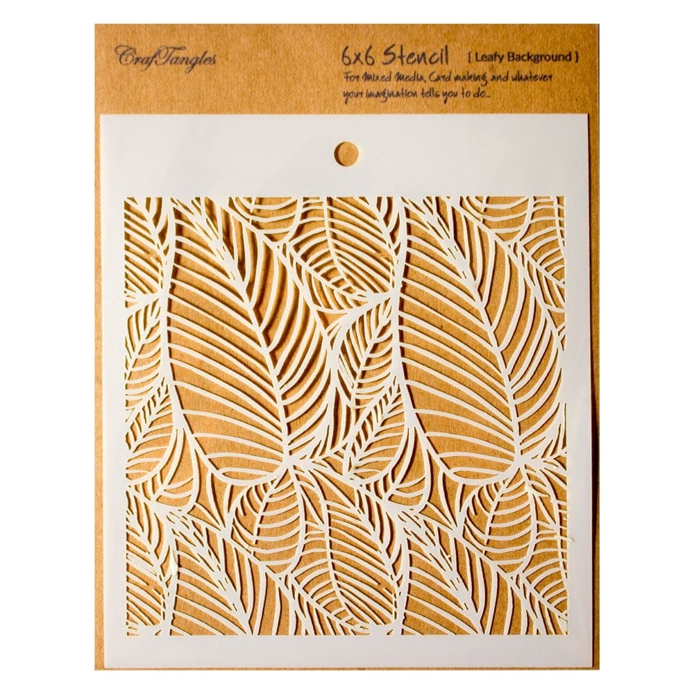 A gorgeous leafy background stencil by CrafTangles. Using these CrafTangles stencils explore limitless possiblities. Whether you are a mixed media artist, card maker or a scrapbooker these stencils make your project stand them out. Use them with Inks, Paints, modelling paste and other media for endless fun and creativity.