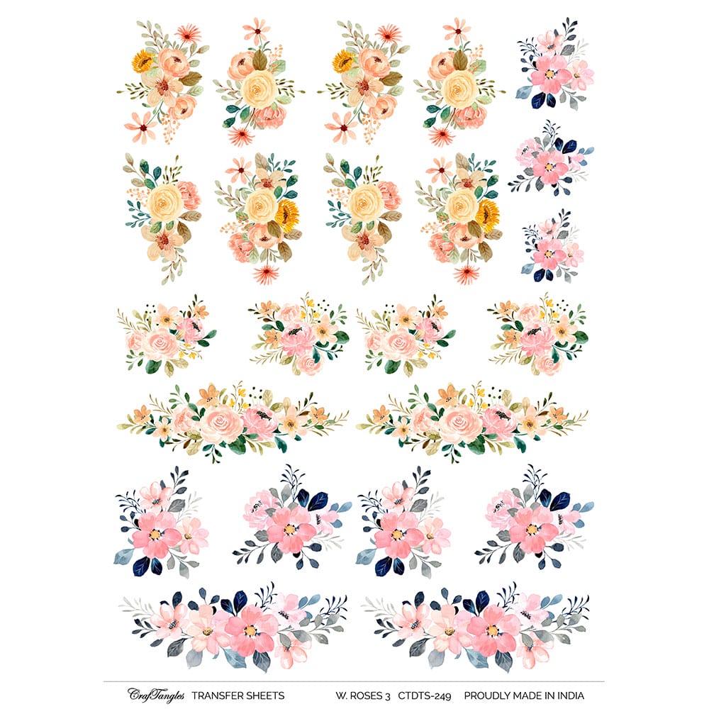 CrafTangles A4 Transfer It Sheets – Watercolour Roses 3