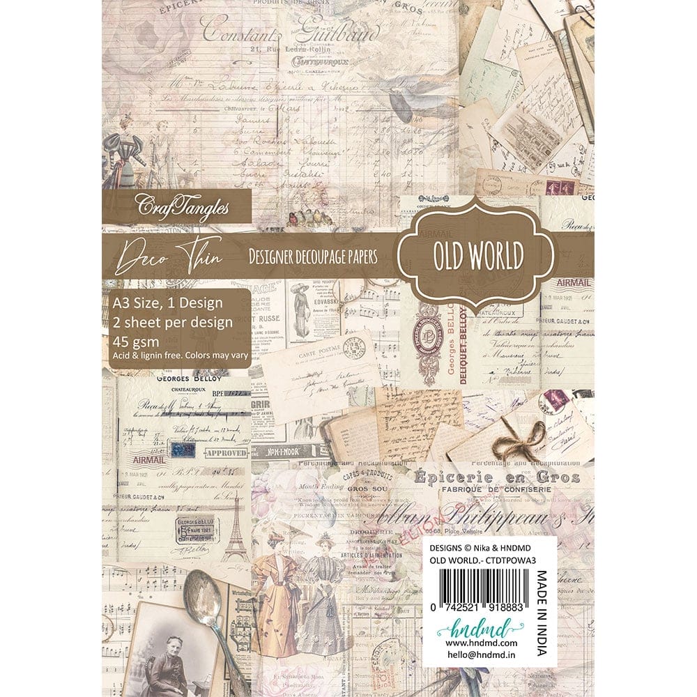 Introducing made in India thinnest decoupage paper. CrafTanges Deco Thin paper Old World is made with the theme of old papers and the vintage world in mind. It delivers exactly what it says i.e a paper filled with an era of vintage goodness.
