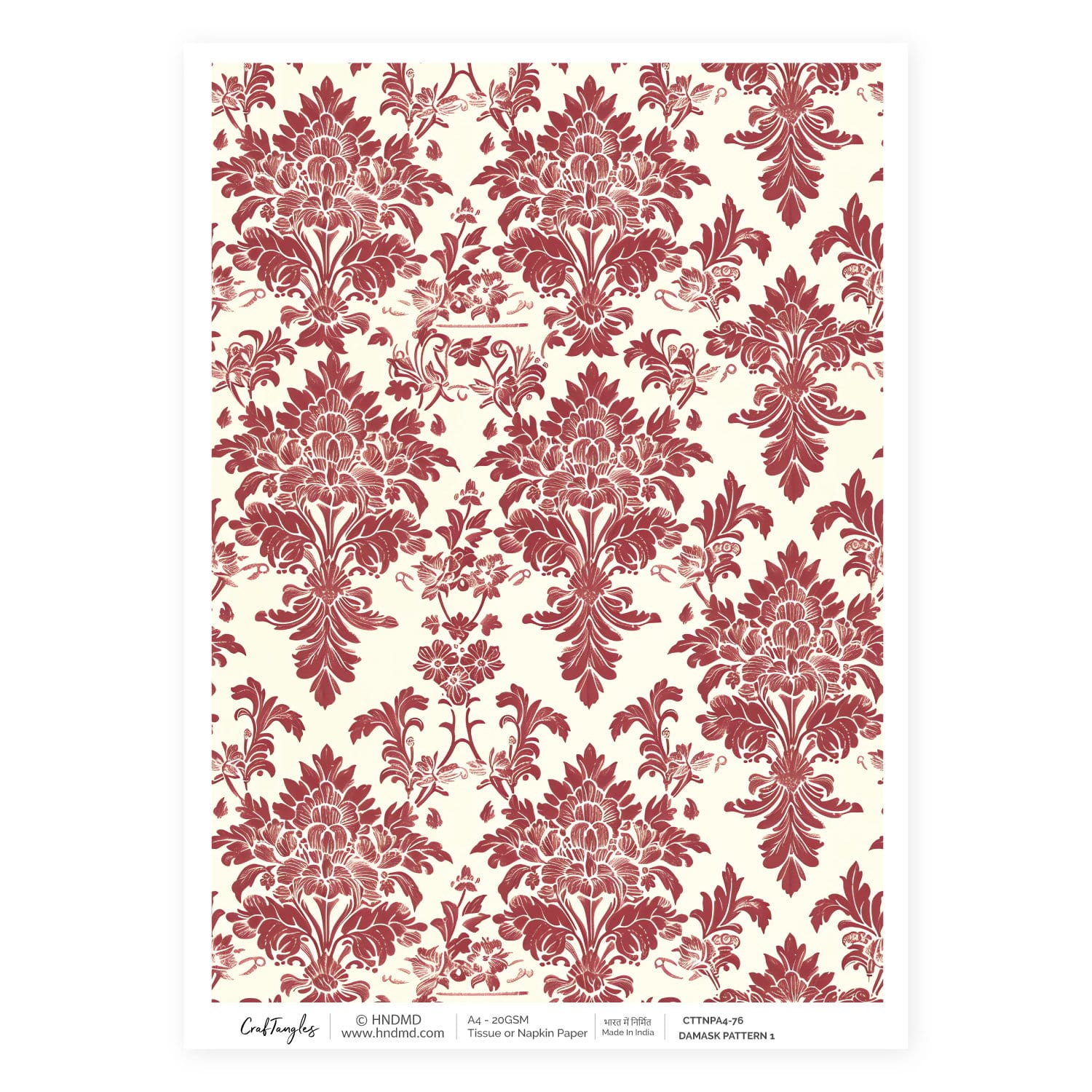 CrafTangles Decoupage Napkin / Tissue / Collage Paper – Damask Pattern 1