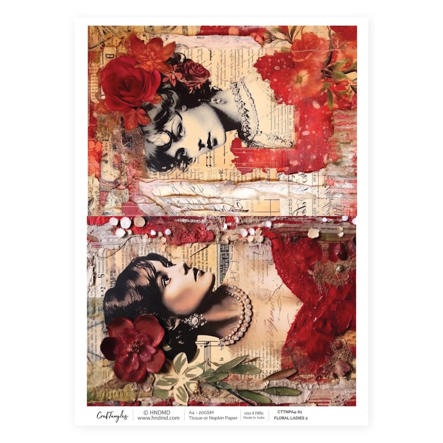 CrafTangles Decoupage Napkin / Tissue / Collage Paper - Floral Ladies 2CrafTangles Decoupage Napkin / Tissue / Collage Paper – Floral Ladies 2