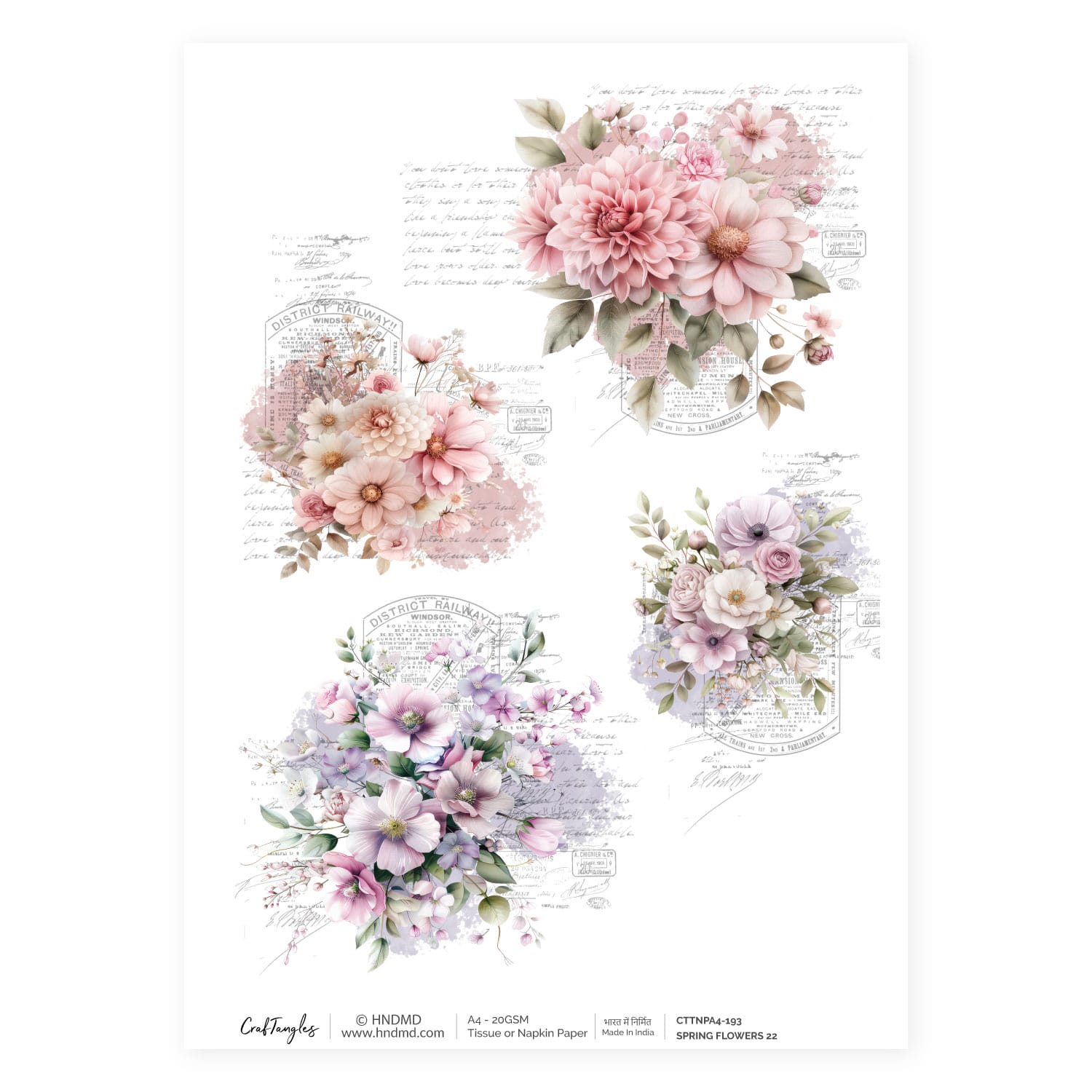 CrafTangles Decoupage Napkin / Tissue / Collage Paper – Spring Flowers 22