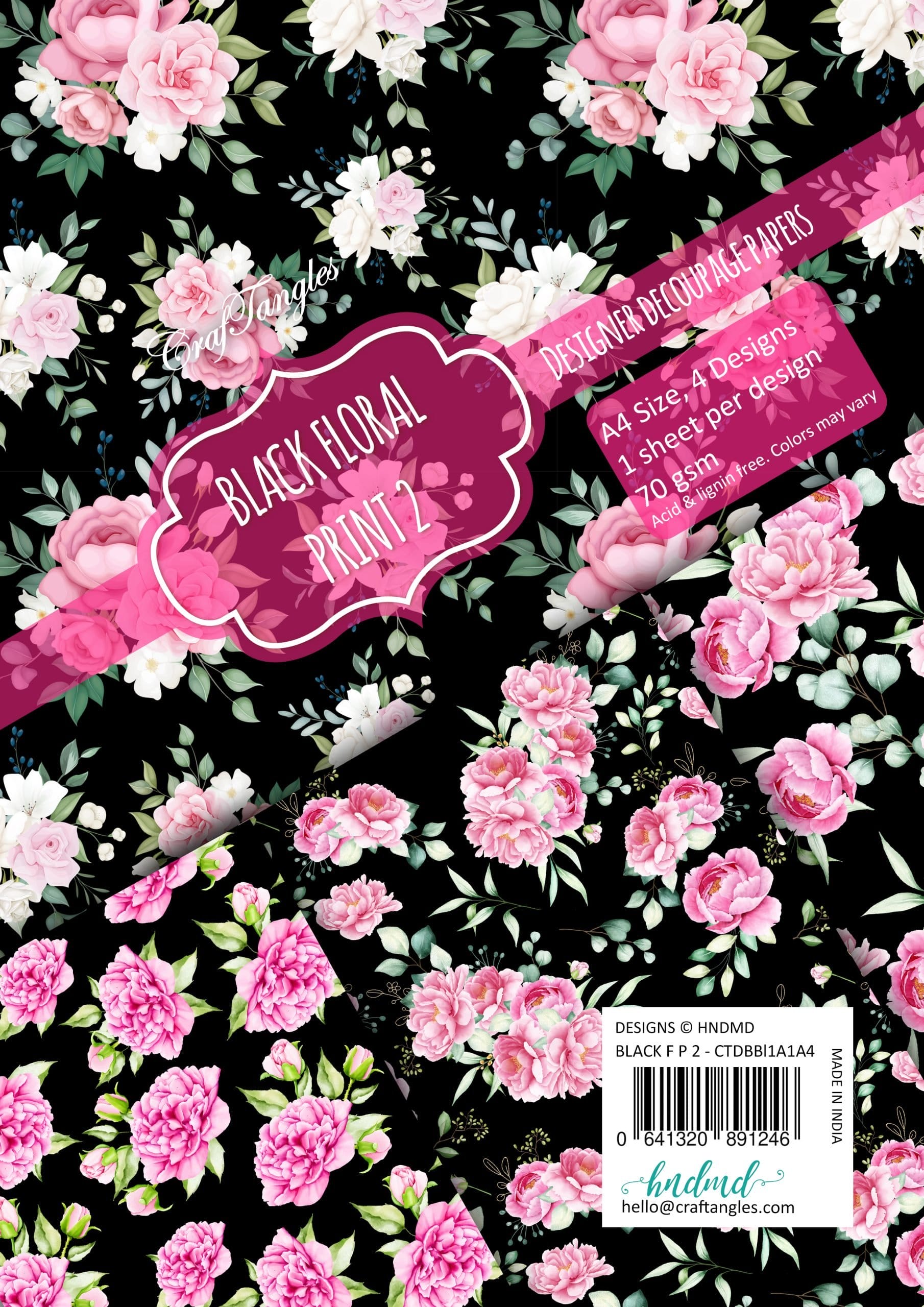 The decoupage paper pack was designed with a focus on the floral theme along with the dark black background. The designs are ideal for all your decoupage projects wherein you wish to have a monochromatic look while having that pop of floral look.