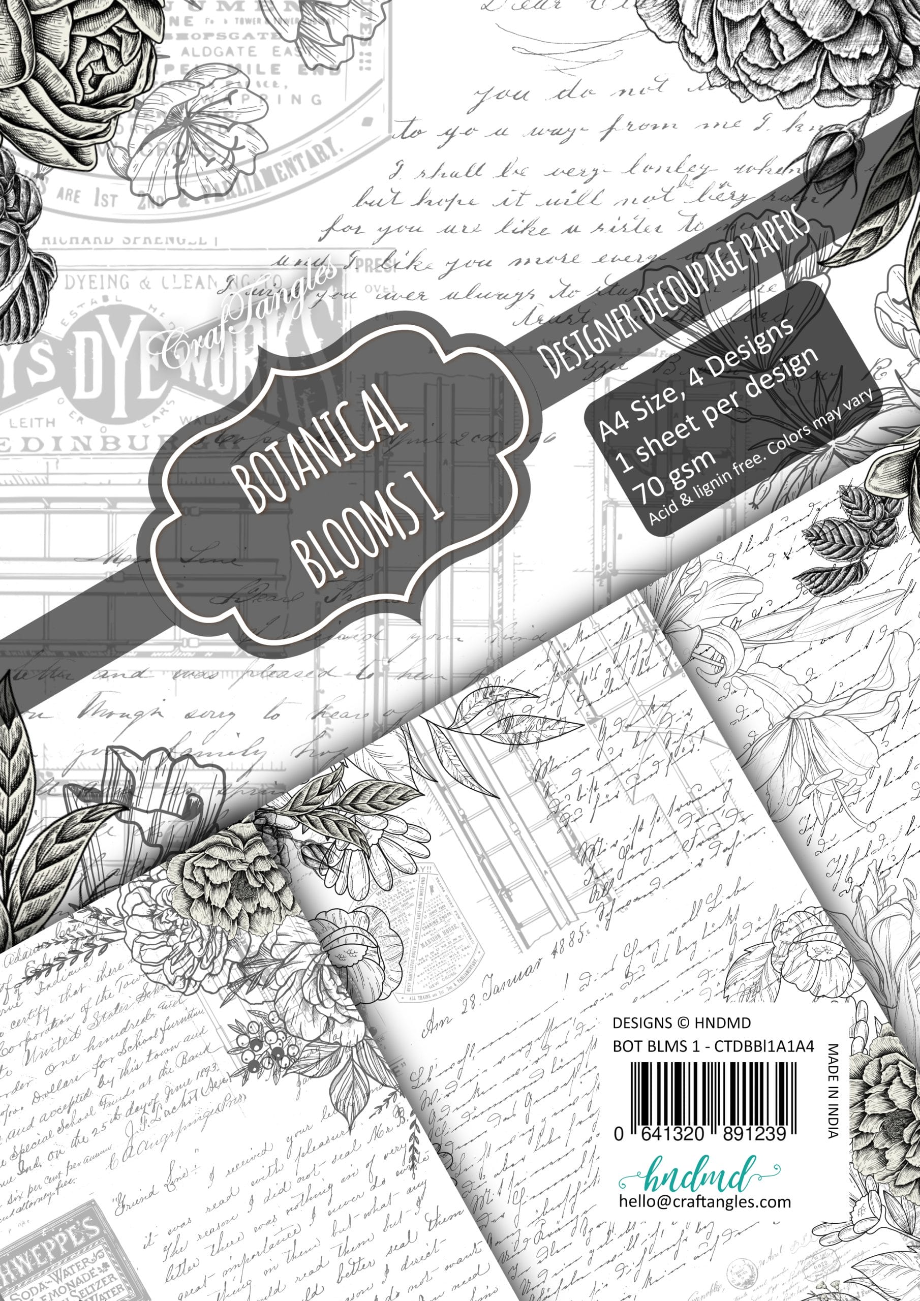 The decoupage paper pack was designed with a focus on the floral theme along with the dark black background. The designs are ideal for all your decoupage projects wherein you wish to have a monochromatic look while having that pop of floral look.