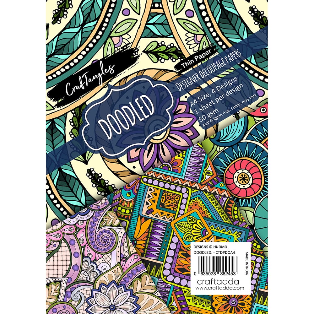 The decoupage paper pack was designed with a focus on colors along with some doodled prints. The designs are ideal for all your decoupage projects wherein you wish to have a colors while having that doodled charm.