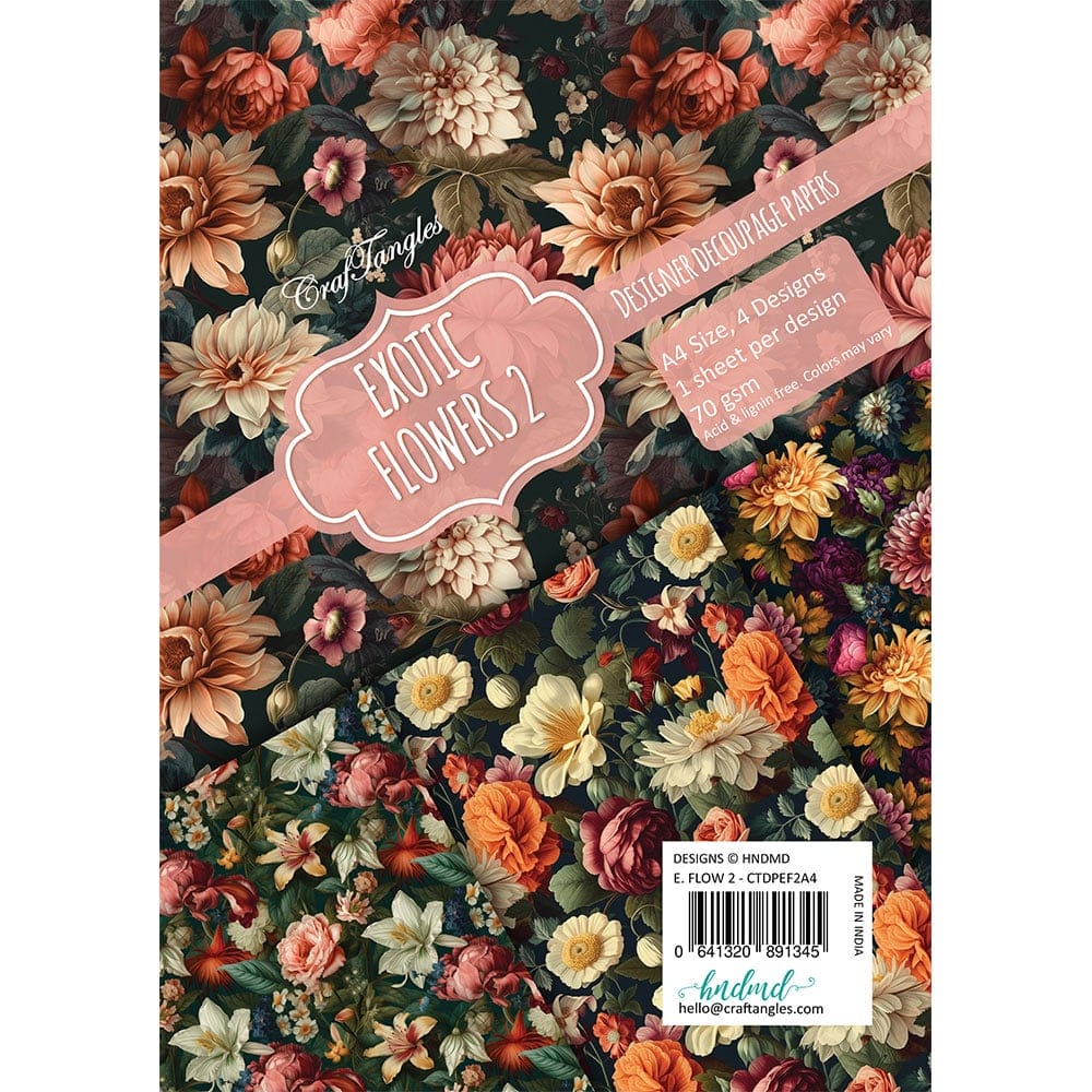 The decoupage paper pack was designed with a focus on the flowers, flowers and more flowers. The designs are ideal for all your decoupage projects wherein you wish to have a bold floral look while having that pop of colours.