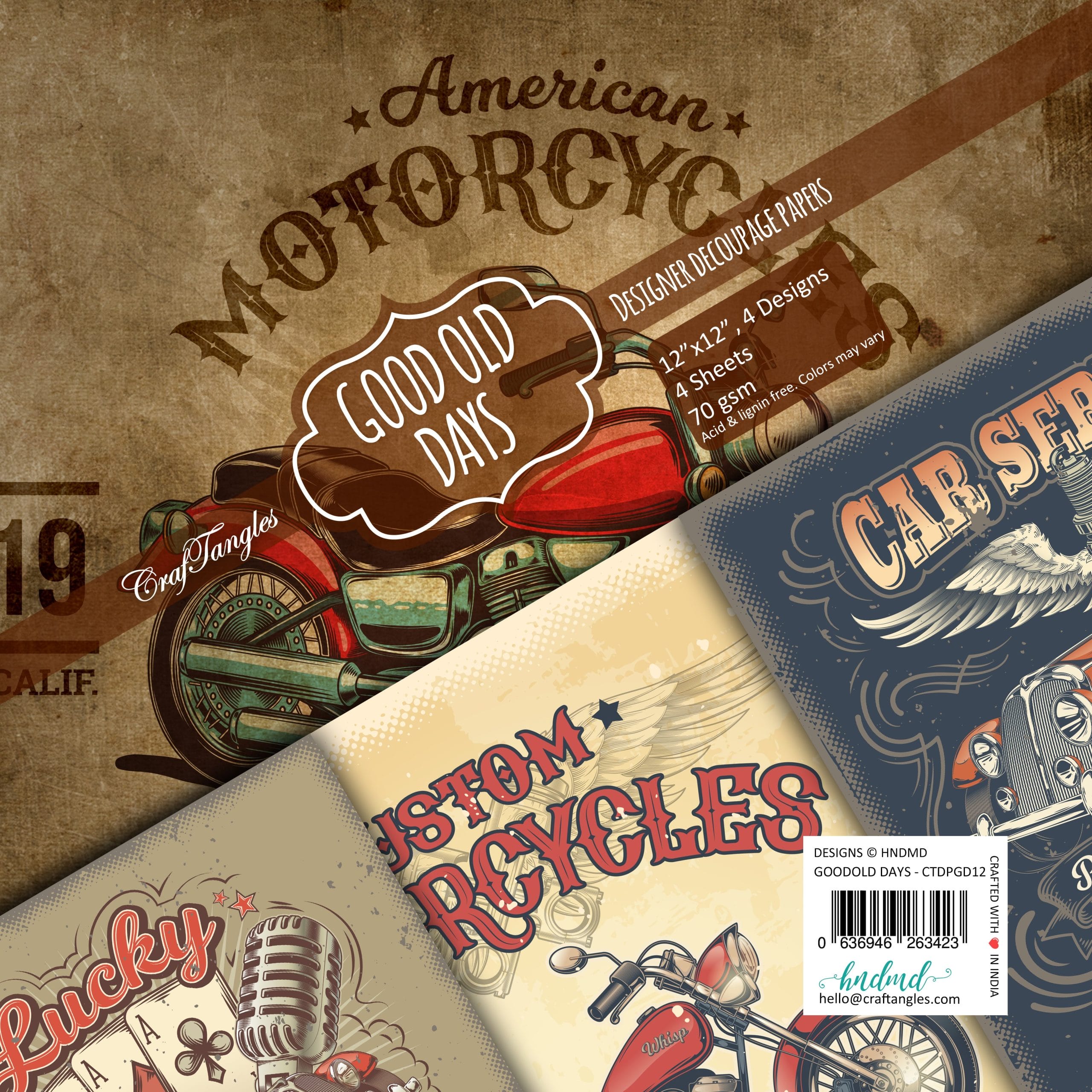 CrafTangles Decoupage Paper Pack – Good Old Days (12 by 12 inch) – 4 sheets