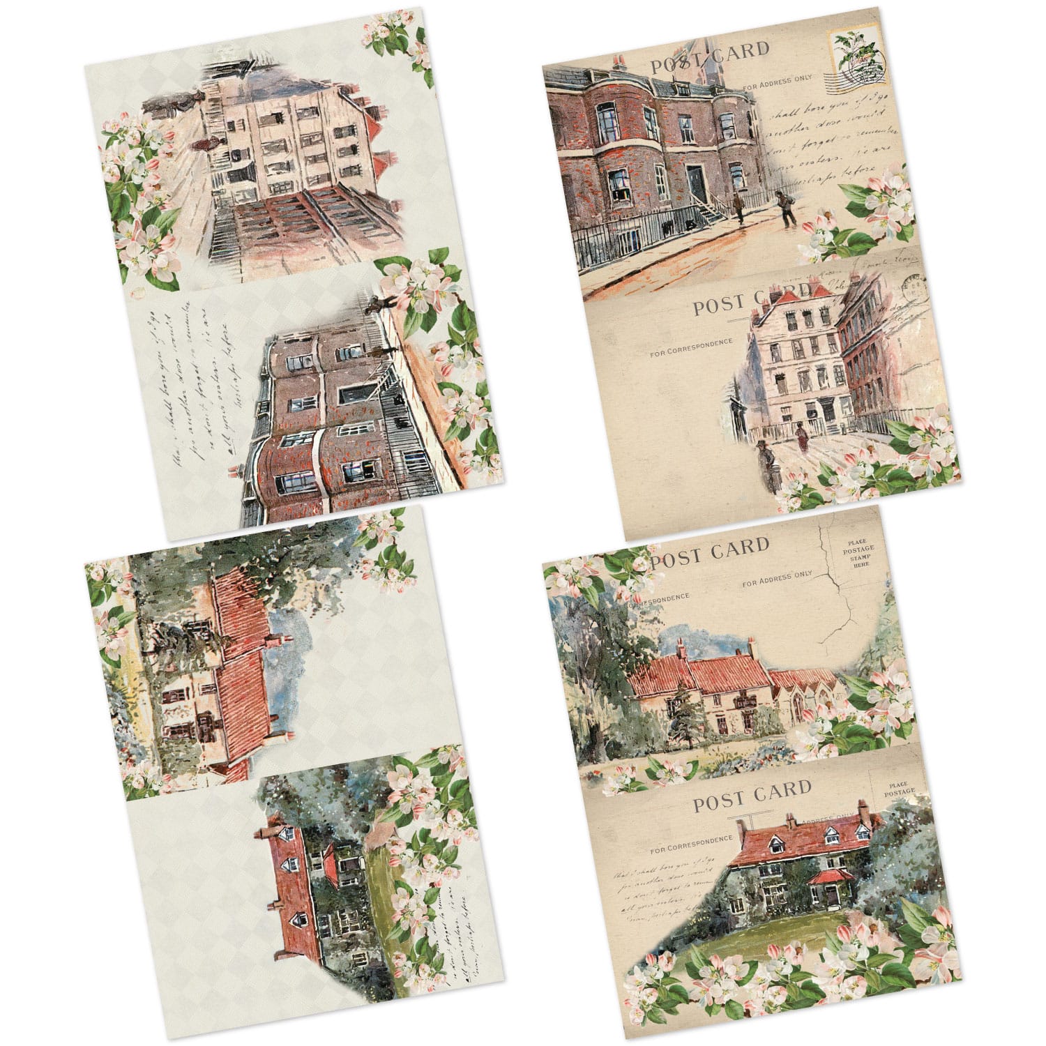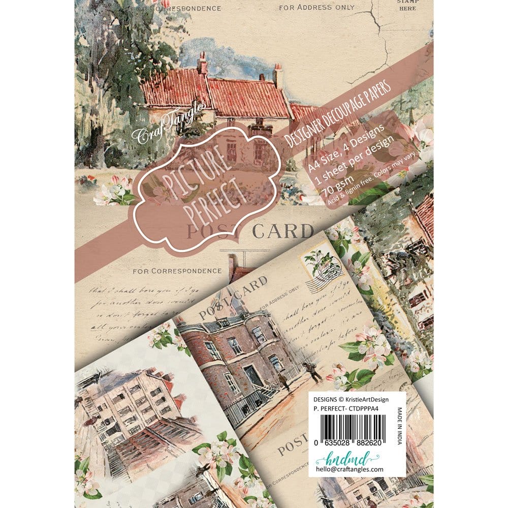 The decoupage paper pack was designed with a focus on vintage houses sketch.