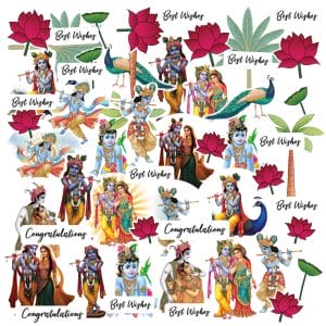 This package includes 55 beautifully crafted die-cut pieces featuring different Krishna and Radha Krishna images with lots of lotus flowers, leaves and coordinated sentiments for various occasions
