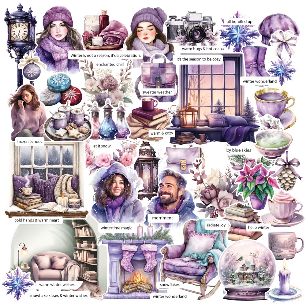 This package includes 58 beautifully crafted die-cut pieces featuring colourful winter themed elements