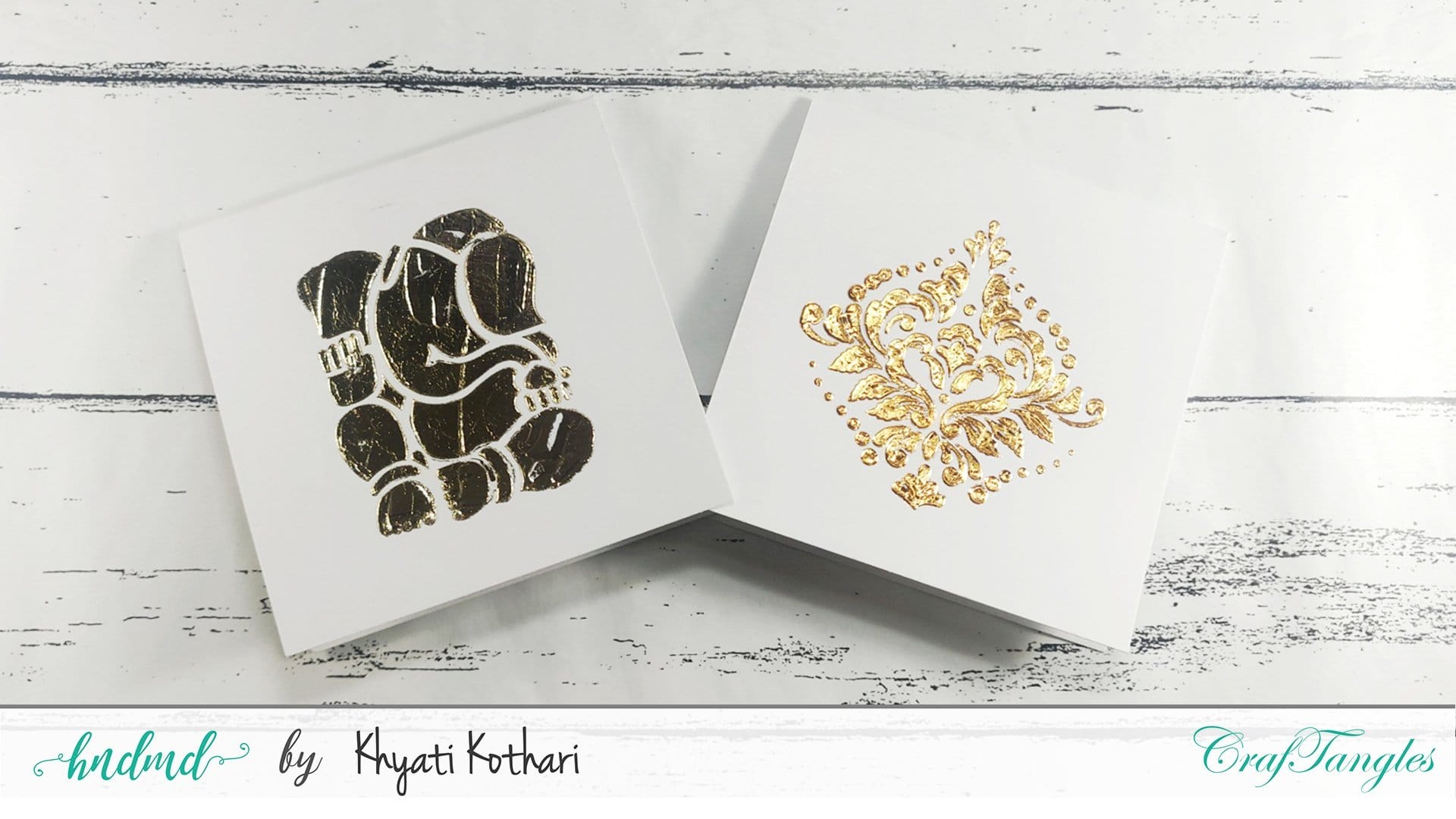 CrafTangles foil magic is a perfect paste for adding foiling to various projects using stencils, stamps with or without a laminator. With the help of this paste, you get a very embossed effect as opposed to regular toner sheets.