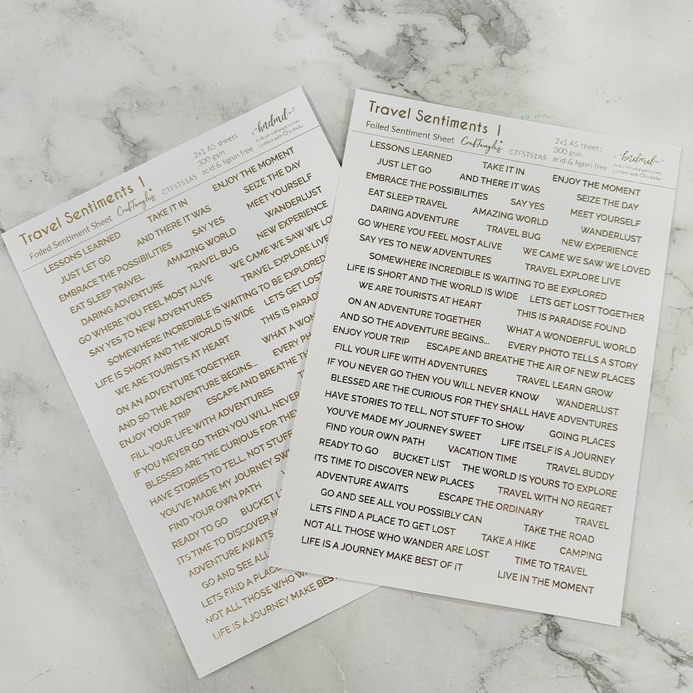 A pack contains 2 sheets of A5 element pack, Sentiment is gold foiled on top of white background.
