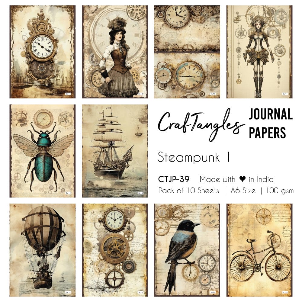 CrafTangles Journal Papers (A6 pack of 10 sheets) – Steampunk 1