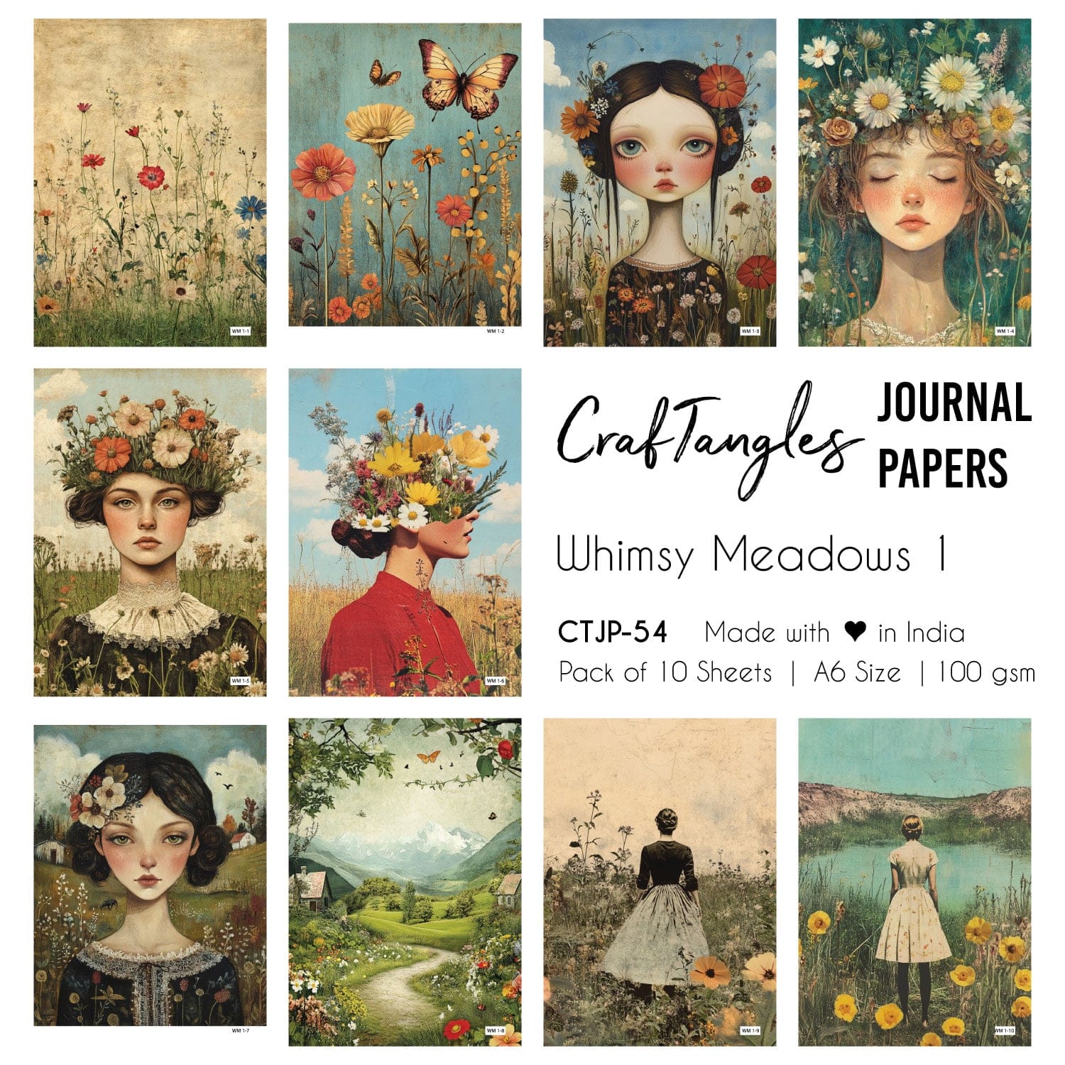 CrafTangles Journal Papers (A6 pack of 10 sheets) – Whimsy Meadows 1