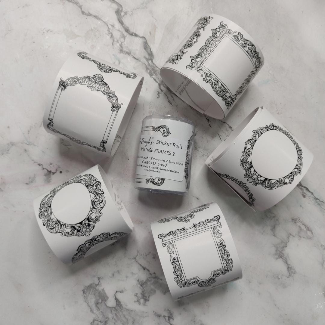 A pack contains 5 rolls of 2.25 by 18 inches sticker each of the designs as shown in the image.