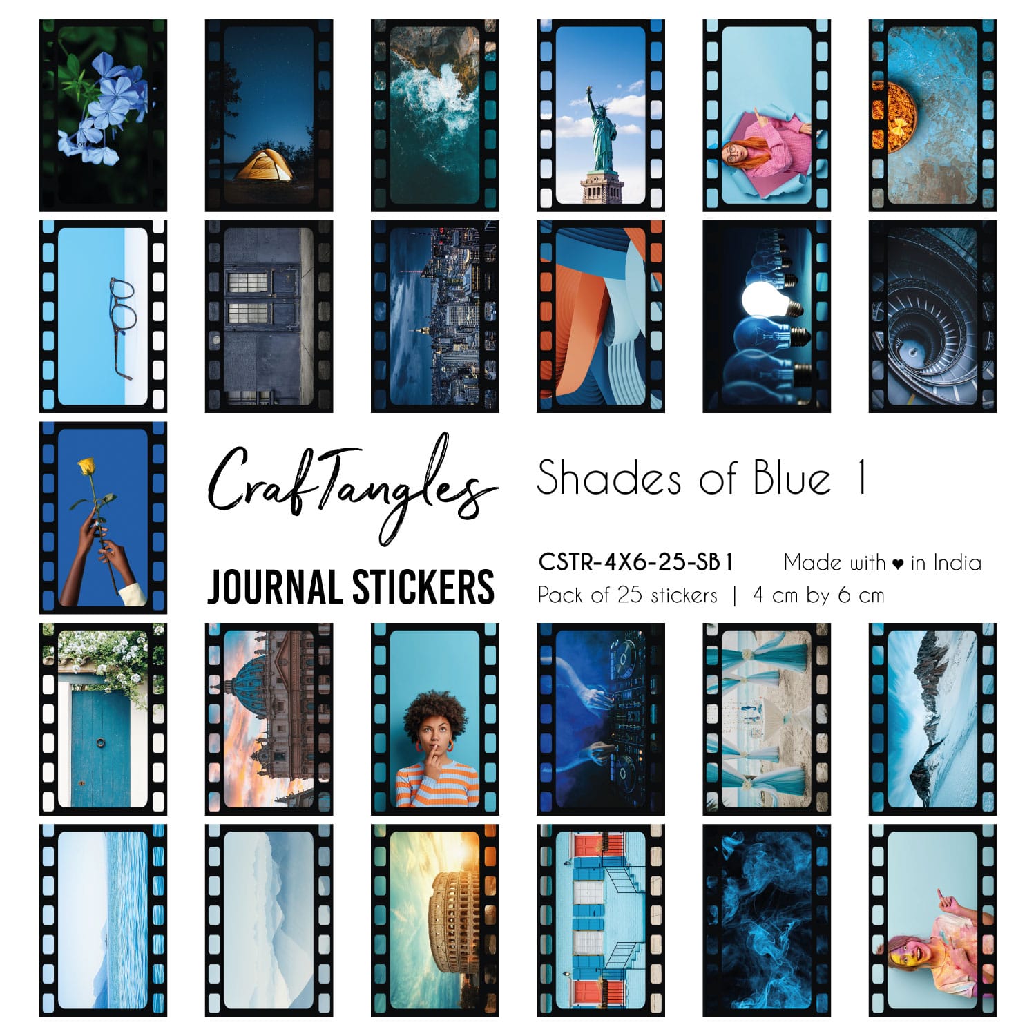 CrafTangles Journal Stickers 4 by 6 cm (Pack of 25 designs) - Shades of Blue 1CrafTangles Journal Stickers 4 by 6 cm (Pack of 25 designs) – Shades of Blue 1