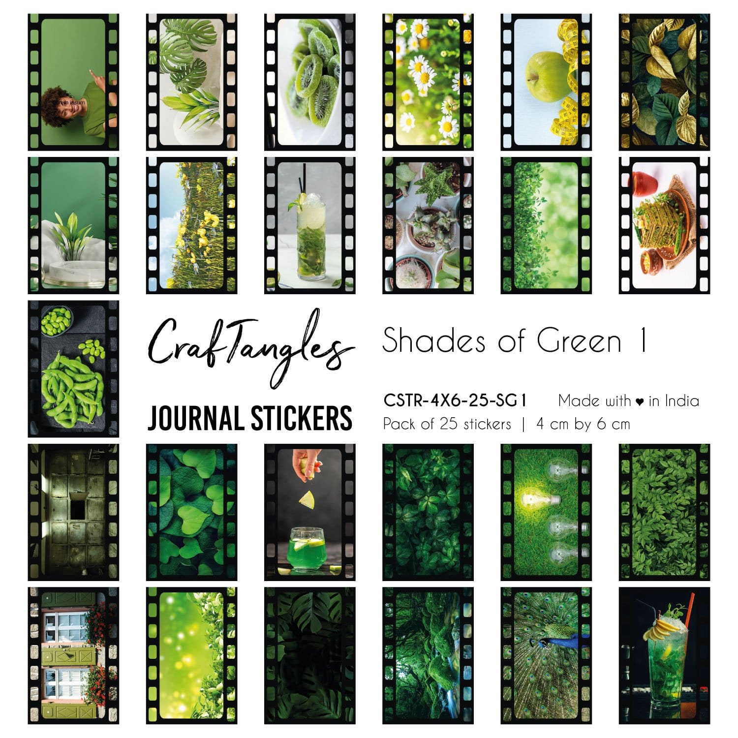CrafTangles Journal Stickers 4 by 6 cm (Pack of 25 designs) - Shades of Green 1CrafTangles Journal Stickers 4 by 6 cm (Pack of 25 designs) – Shades of Green 1