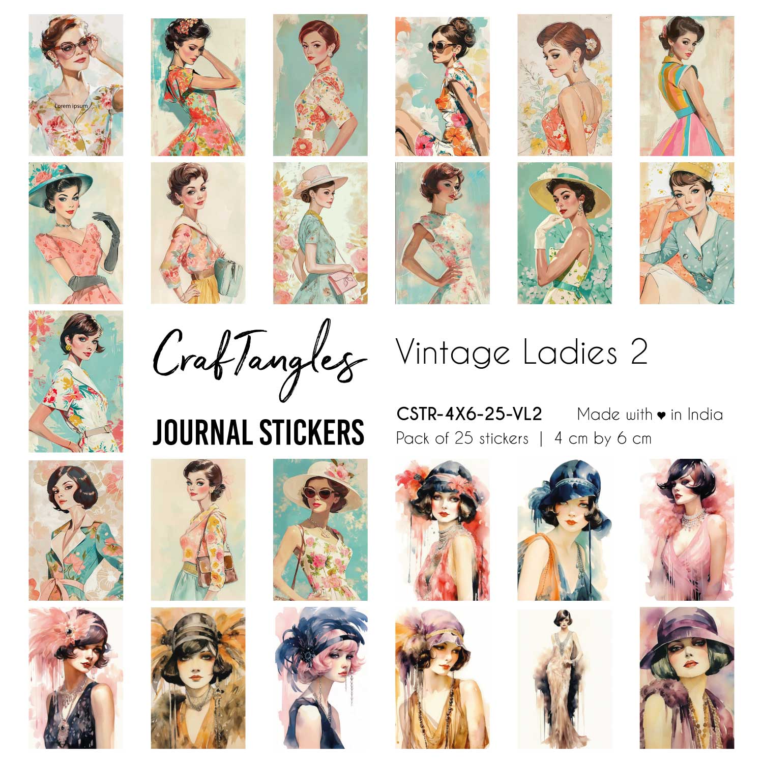 CrafTangles Journal Stickers 4 by 6 cm (Pack of 25 designs) – Vintage Ladies 2