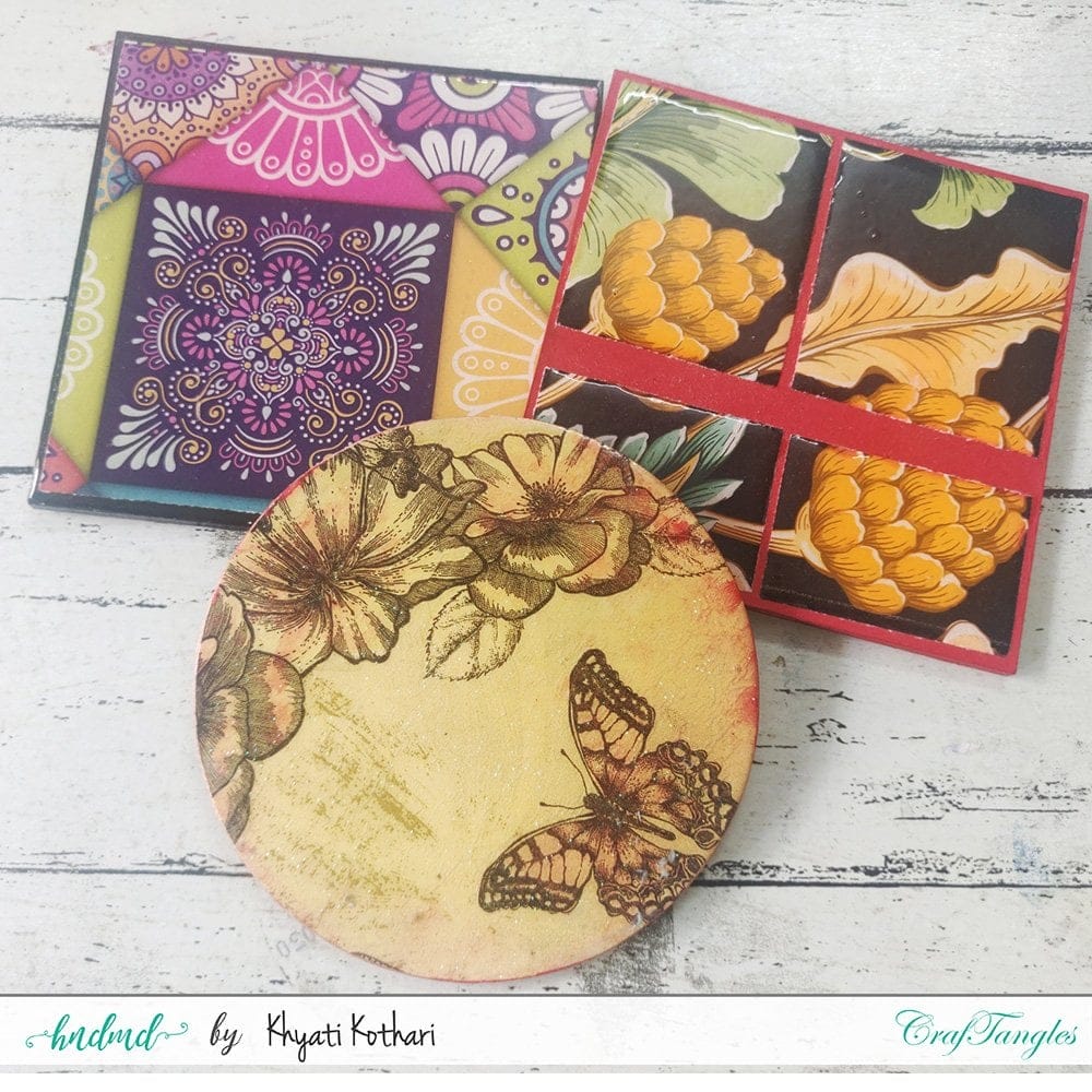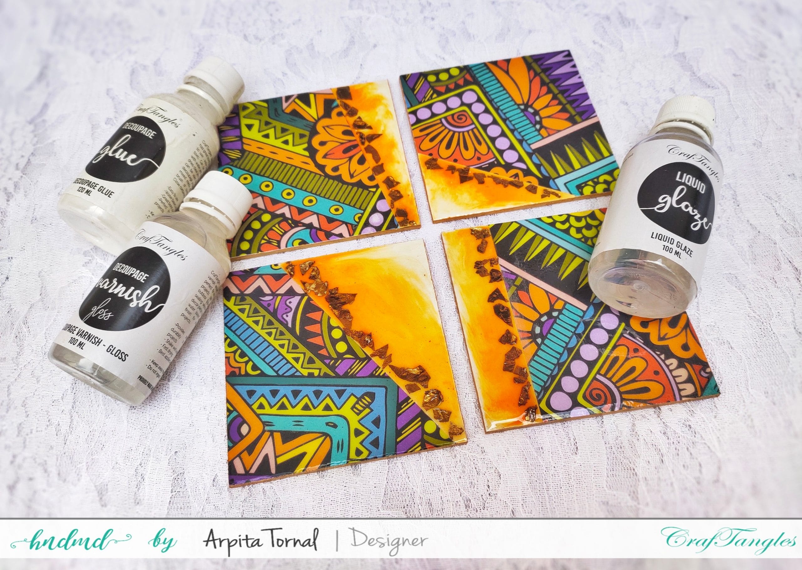 With alcohol inks, you need to add one layer of sealer and then use liquid glaze on top for that glass-like finish. With fluid acrylic inks and acrylic inks or acrylic paints no sealer necessary you can directly add a layer of glaze as the top coat to get that glass-like effect. For more information check out this post by Neha Bhatt on our blog