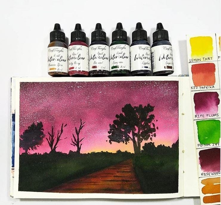 Whether you want to do a quick background, paint a flower or just want to do a heavy wet on wet project these liquid watercolours would suit them all. Just a drop of watercolour on your palette and see the colours unfold.